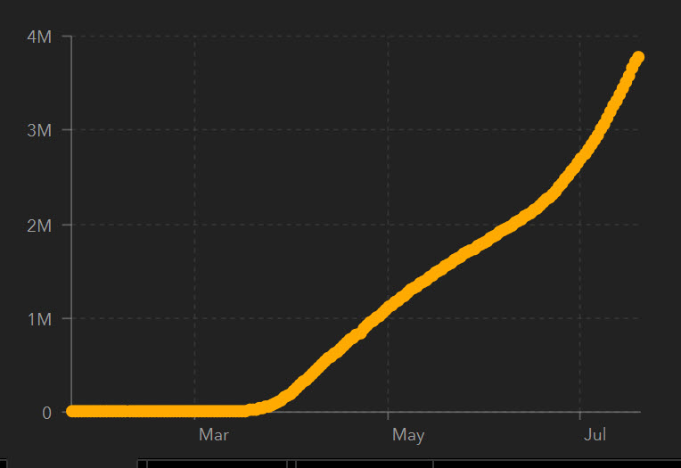 This is what the infection curve in the U.S looks like as of today, July 20, 2020: